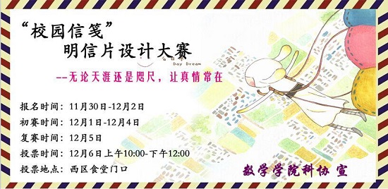 威尼斯官网科协现举办“校园信笺”明信片设计大赛,面向全校征集电子版明信片。